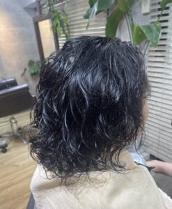 治療後の強いくせ毛を縮毛矯正後、頭皮に優しいビーワンカラーで白髪をお染しました。