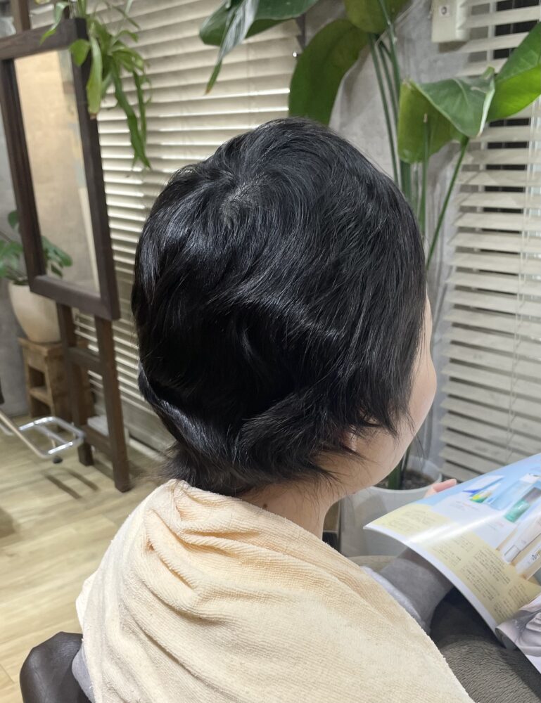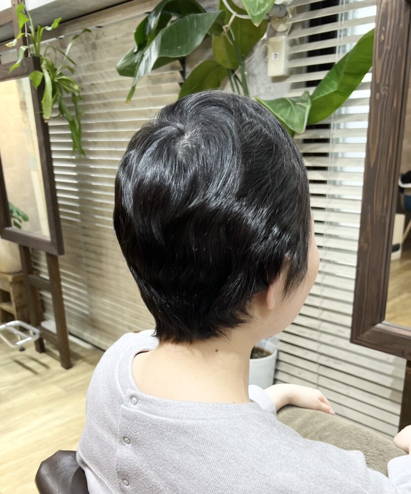 今回も襟足部分に少しくせが残りました。